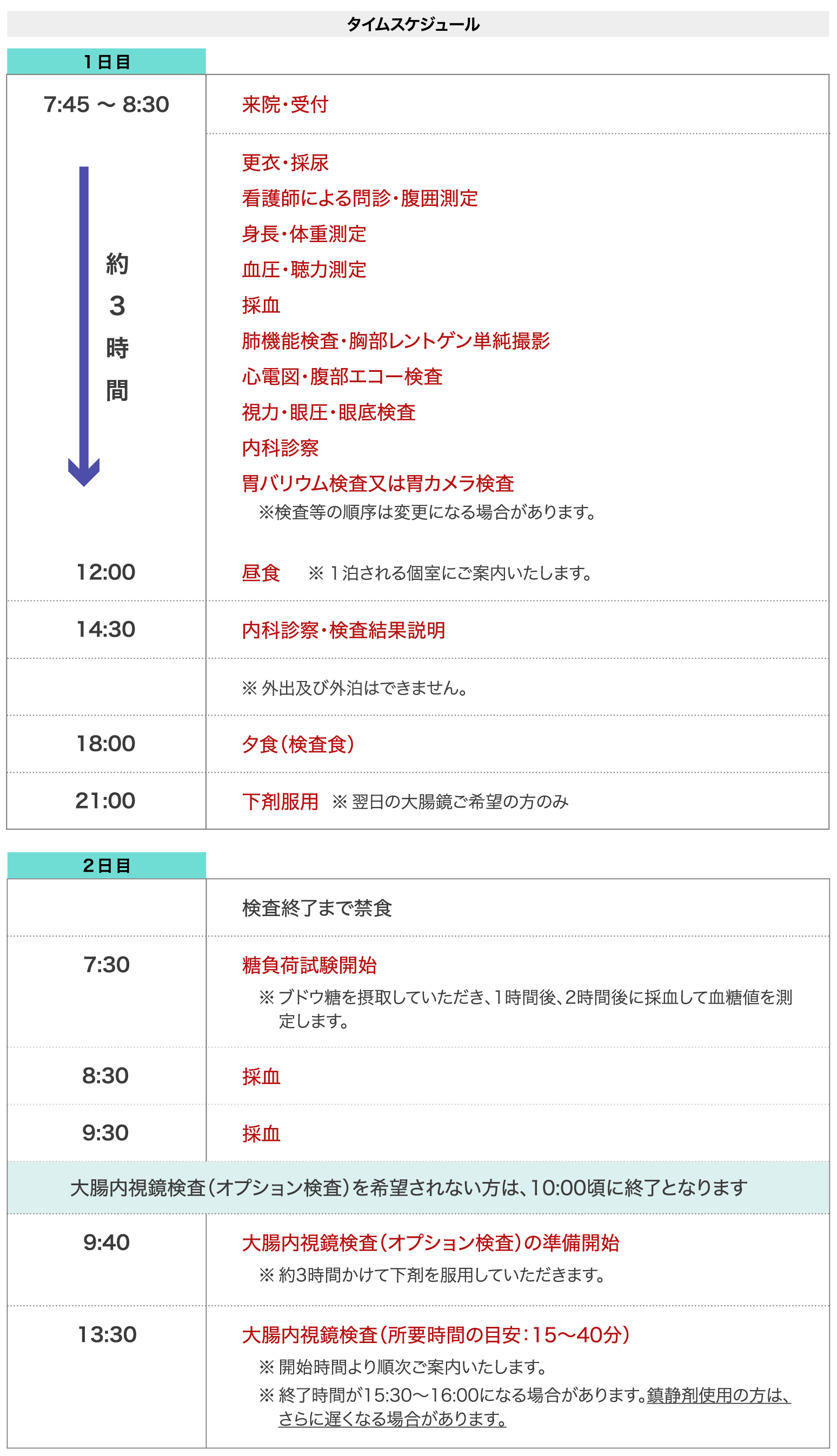 ご宿泊していただき、1泊2日で健診を行うコースです。