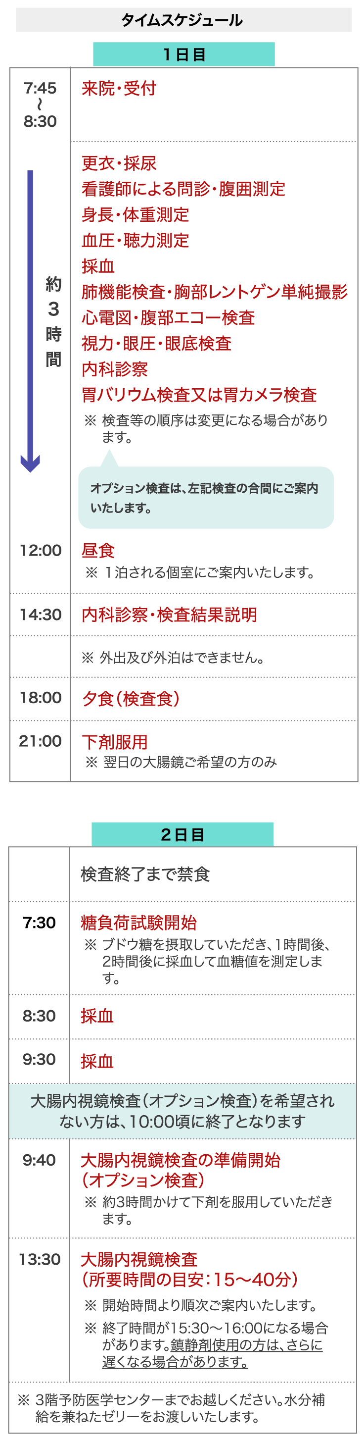 北里の人間ドックには、「日帰りコース」と「1泊2日コース」の2種類の基本コースが