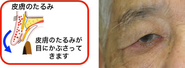 また、まばたきによりまぶたの皮膚もたるんできます。これは眼瞼皮膚弛緩症(がんけんひふしかんしょう)と言います。